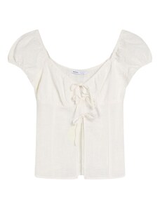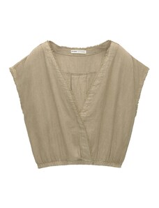 Стил на блуза: Блузи тип риза; Дизайн: Ластичен подгъв, Дълбоко деколте, За връзване; Материал: Лен; Модели: Един цвят; Яка на риза: Без яка; Детайли: Драпиран; Допълнителни елементи: Едноцветни тегели, Мек допир; Кройка: Тясна форма; Дължина на ръкавите: Къс ръкав; Дължина: Къса кройка. R-0.46. P-0.2065395409. RQ-0.46
