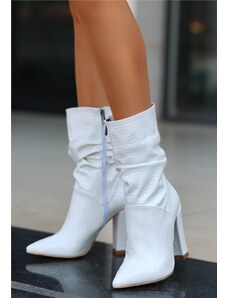 Erbil Shoes Дамски лачени боти с ток - Бели #405946