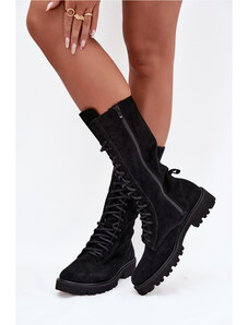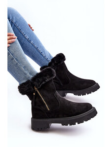 Дамски работни ботуши от естествен велур топли Zazoo 4213 Черни