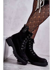 Gemre PJ1 Топли велурени ботуши с връзки Черни Ritta