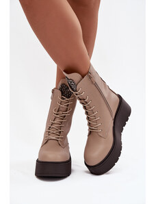 Boto Кожени дамски боти с декорация топли бежови Ulrika