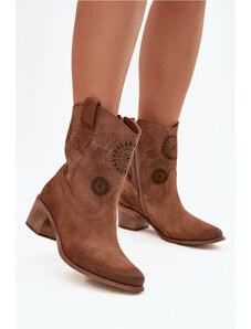 Кожени дамски боти от велур с отвори на ток Zazoo 3844 кафяви