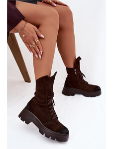 Boto Топли дамски боти на платформа с връзки тъмносанджинови Harmine