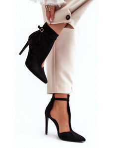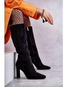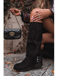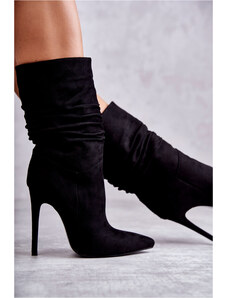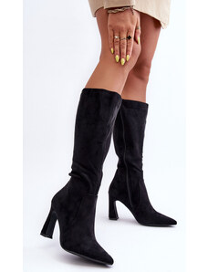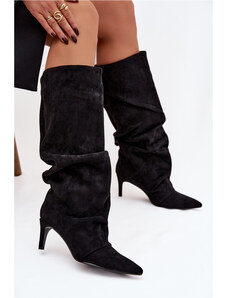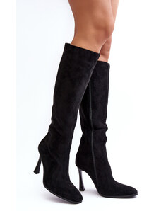 Boto Плъзгащи се дамски ботуши на ток с еко велур черни Noretta