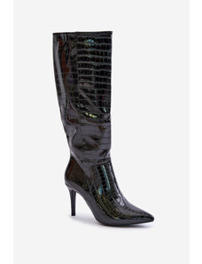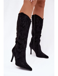 Boto Stiletto heel Cossacks with black embossing Reanwenna