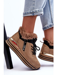 Boto Ниски дамски зимни обувки с бродерия на платформа шоколадови Taliah