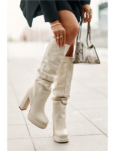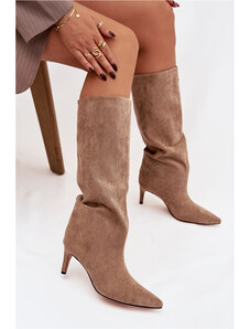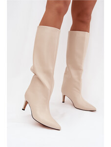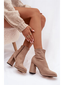 Boto Плъзгащи се дамски ботуши на ток от еко велур бежови Noretta