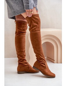 Boto PH2 Ботуши На Плосък Ток До Коляното От Еко Замша Кафяви Linnithia