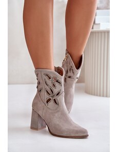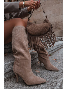 Boto Lewski Shoes Велурени ажурни ботуши на ток Cappuccino Lewski 3629