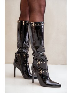 Boto FB3 Украсени ботуши от лакирана еко кожа на ток черни