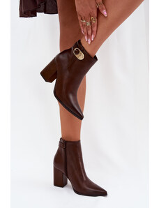 Boto Дамски Зимни Боти На Висок Ток С Декоративни Детайли Шоколадови Lucinda