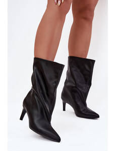Boto Дамски боти на тънък ток черни Elvienne