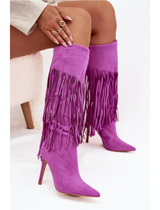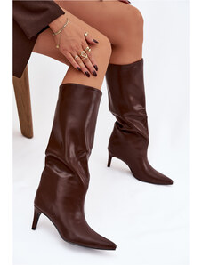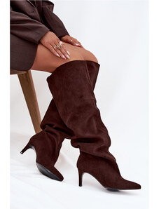 Boto Дамски боти на висок ток от еко велур шоколадови Инеса