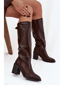 Boto Дамски боти на ток с плъзгане шоколадови Mavilla