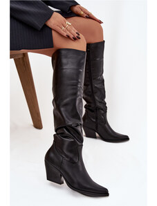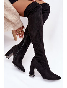 Boto Дамски ботуши на ток над коляното черни Vionette