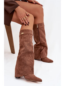 Boto Плъзгащи се дамски ботуши на ток с еко велур шоколадови Noretta