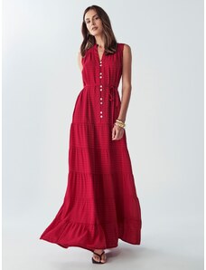 Дизайн: Машинен подгъв, Цепка, Цип на гърба, Дълбоко деколте; Начин на затваряне: Цип; Деколте: Гръцко деколте; Модели: Един цвят; Начин на носене: Тънки презрамки; Допълнителни елементи: Регулиращи се дръжки, Едноцветни тегели, Леко падаща материя; Дължина: Дълъг/Макси; Кройка: Тясна форма; Дължина на ръкавите: Без ръкави. R-0.59. P-0.1800471057. RQ-