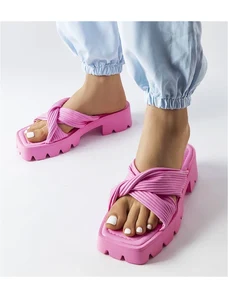 Marka niezdefiniowana Pink flip-flops on tractor sole Dubé