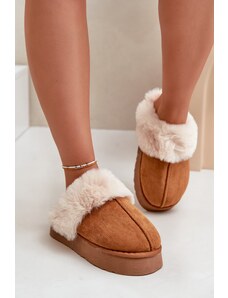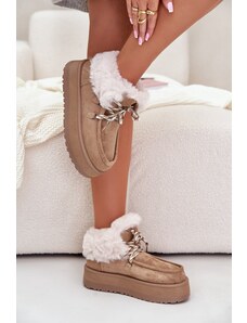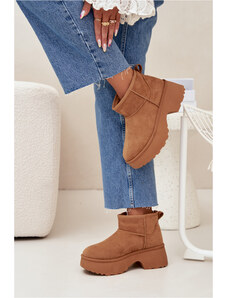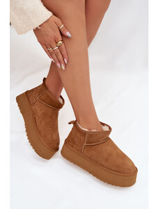 Boto FB2 Ниски дамски снежни ботуши на платформа с козина тъмен бежов Neathren