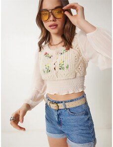 Katy Perry exclusive for ABOUT YOU Блуза 'Jolina' кремаво / зелено