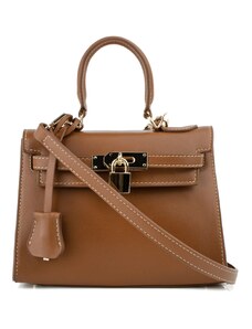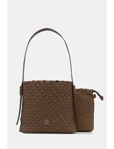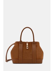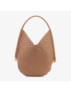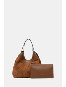 ZARENA Donna - чанта за рамо с ръчно плетен детайл и метални елементи - кафява