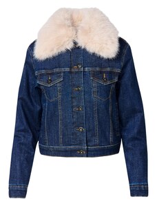 Frash.EU Дамско дънково яке, с пухени детайли, катарама на яката, цвят син, Ft8650 - S