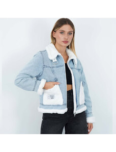Urban Classics Women's Oversized Denim Jacket Sherpa Clear Blue Washed