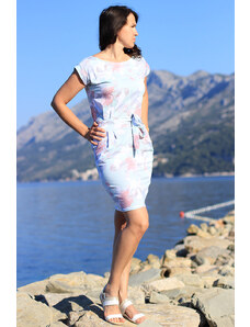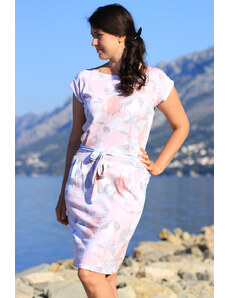 NUMOCO 13-162 Sporty dress with pockets and ties - beige flowers