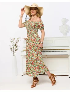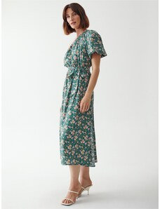 Resti Women’s knee-length dress with puffed short sleeves and a belt adorned with beautiful roses