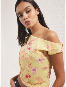 Trend Alaçatı Stili Тениска пастелно жълто