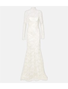 Danielle Frankel Bridal Adena floral lace-trimmed wool and silk gown