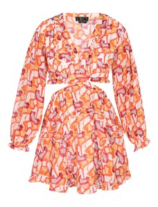 Faina Рокля за коктейл кафяво / оранжево / черно / бяло