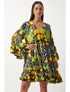 Mbym Рокля тип риза 'Meera' светложълто / тъмножълто / лилав / светлолилаво / черно