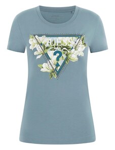 GUESS Тениска 'CAMELIA' опушено синьо / зелено / петрол / бяло