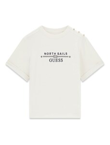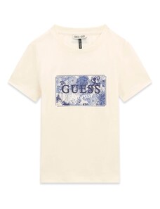 GUESS Тениска кремаво / черно