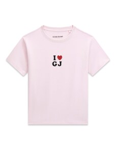 GUESS JEANS Тениска 'I LOVE GJ' слива / алено / черно