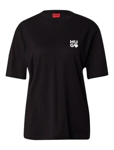 HUGO Тениска 'Damelody' черно / бяло