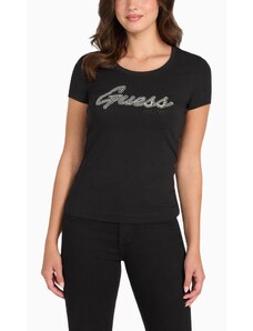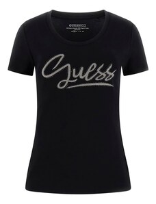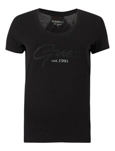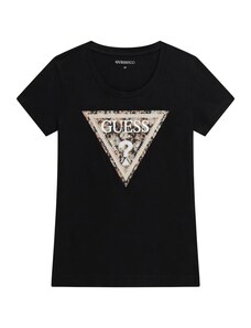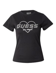 GUESS Тениска черно / сребърно