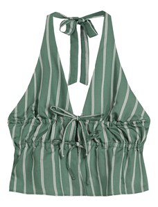 Bershka Топ светлосиво / нефритено зелено / бяло