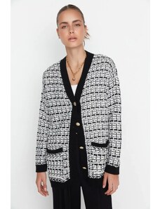 WE Fashion Плетена жилетка черно / бяло