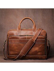 DELIS Мъжка чанта, Eneas GT3276, естествена кожа, кафяв тен