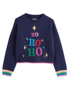Next Пуловер 'Christmas Ho Ho Ho' нейви синьо / елхово зелено / тъмнорозово / ярко червено