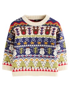 Next Пуловер тъмносиньо / зелено / червено / бял памук