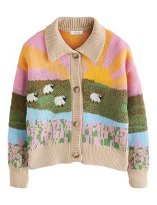 Next Плетена жилетка синьо / лимон / зелено / светлорозово