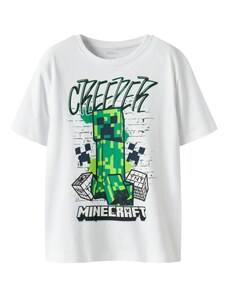 NAME IT Тениска 'NKMMase Minecraft' сиво / зелено / черно / бяло