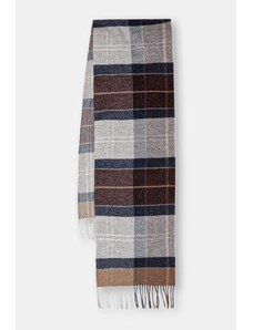 Шал от колекция Fred Perry. Моделът е направен от материя с шарки. Вълната, благодарение на високите си терморегулиращи свойства, ви помага да се стоплите, когато е студено, и ви охлажда, когато е топло.