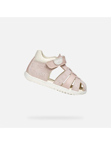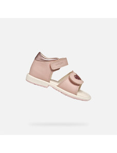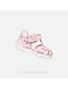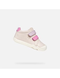 A girl's first step of the Geox Iupidoo in pink impresses with its delicate design with wavy patterns in cream color. The shoes are equipped with a practical two-Velcro fastening for easy putting on.