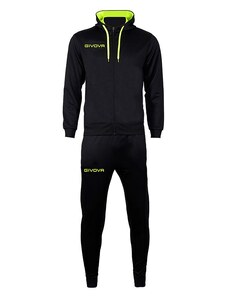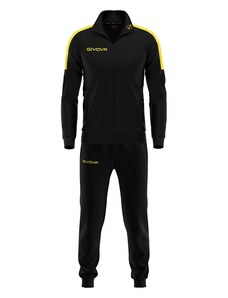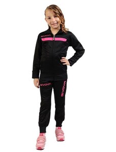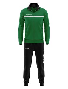 Детският Анцунг GIVOVA Tuta Visa е изработен изцяло от висококачествени, полиестерни материали, които го правят подходящ, какво за ежедневно носене, така и за спортуване. Горната част на анцунга се закопчава с цип, притежава малка яка, която му придава спортно-елегантен вид и има два джоба. За допълнително удобство анцунгът е снабден с ластици, които да го придържат плътно по тялото. Тези ластици могат да бъдат открити както на горнището при китките и ханша, така и на долната му част при глезените. То също разполага с два странични джоба. Името на марката производител, може да бъде видяно на няколко места. Специфичното за този модел анцунг е долната част, при която се забелязва съвсем леко вталяване на крачолите.