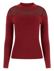 GUESS JEANS Пуловер тъмночервено / черно / бяло