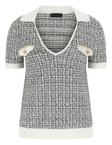 GUESS Пуловер 'Annabelle' тъмносиво / бяло